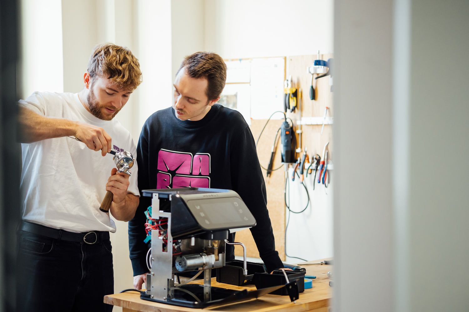 We're two friends, coffee lovers and tech nerdsβand now entrepreneurs, too. Even back in the day, we loved tinkering with gadgets after school. One day, we took apart Max's first espresso machine and wondered: Why is there still such ancient technology in it? We knew immediately: This can be done better! π‘
