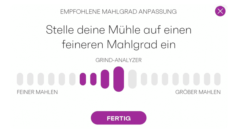 Der Grind analyser hilft dir, den idealen Mahlgrad für dein Rezept zu finden und gibt dir eine klare Empfehlung.