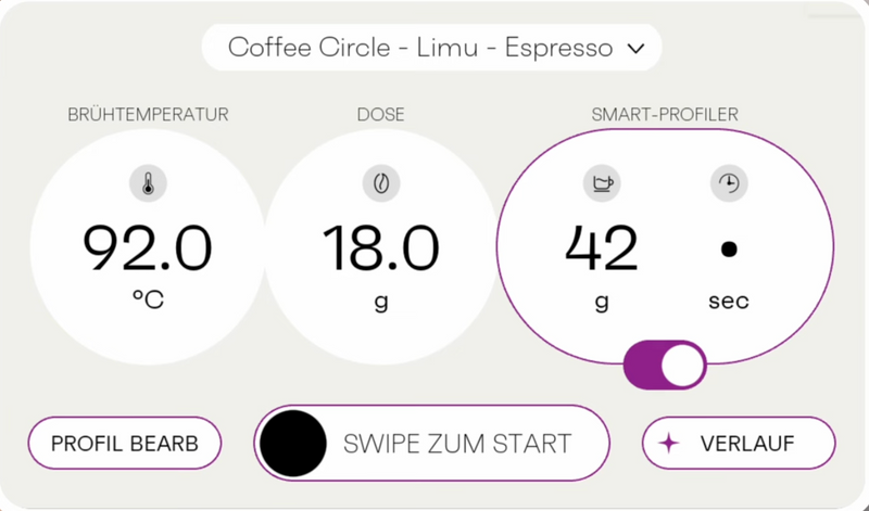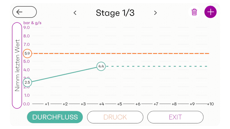 Bestimme jeden Schritt der Extraktion selbst! Eigene Profile und grenzenlose Kontrolle über Druck und Durchflussverlauf deines Shots.